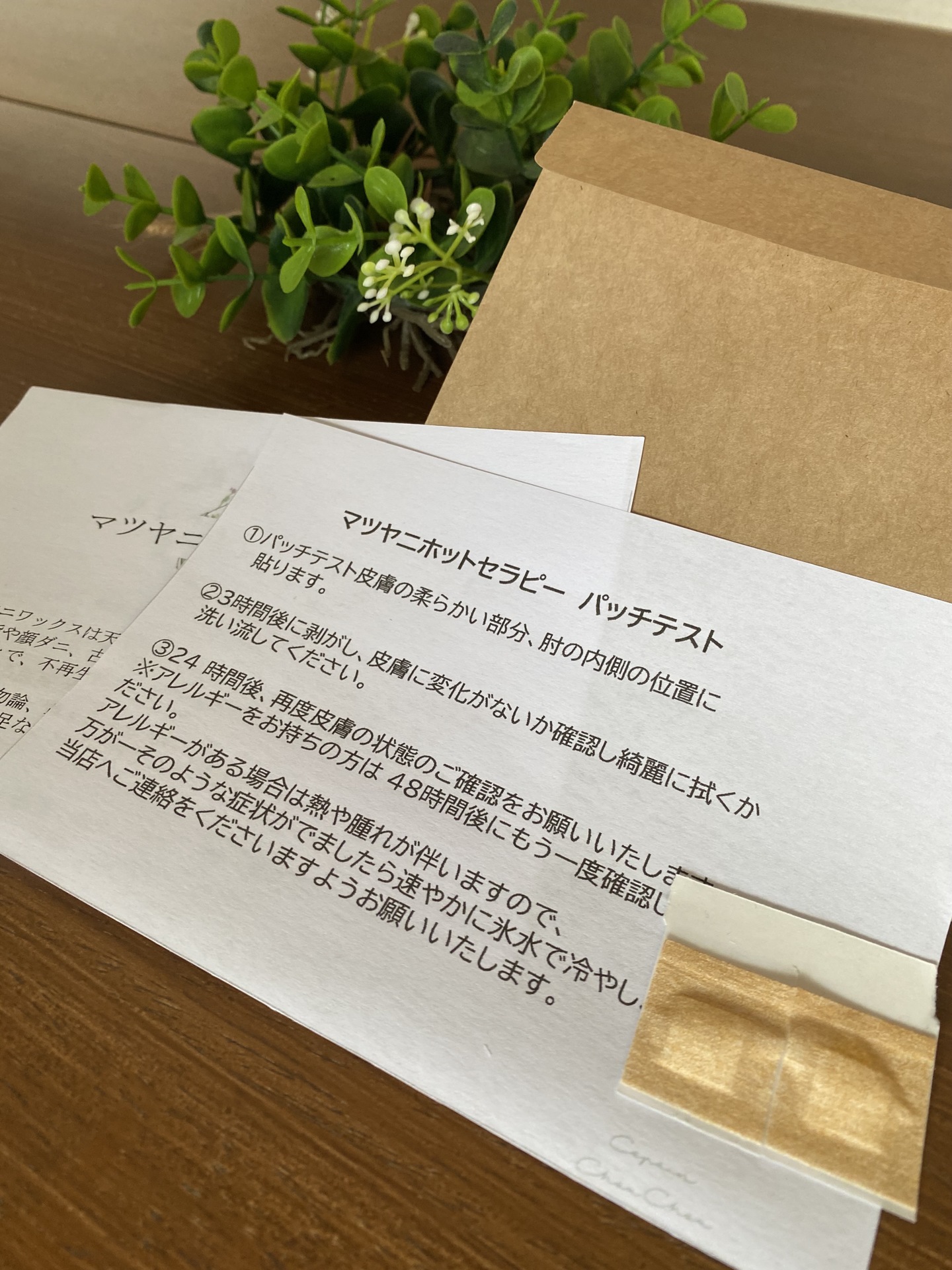 初めてご利用の方には、必ずパッチテストをお願いしております。